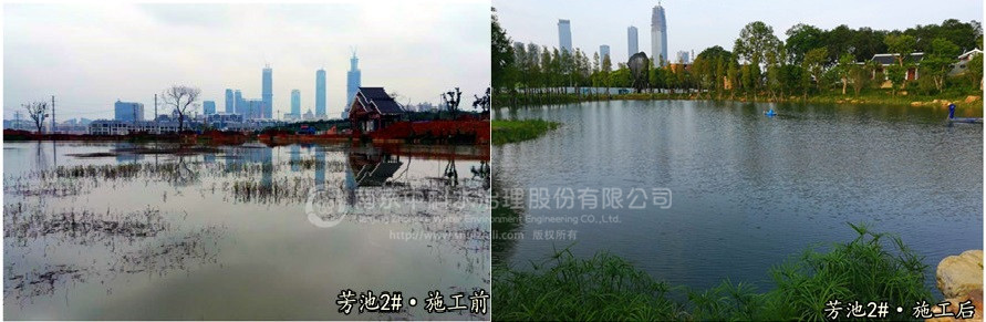 南京中科水治理股份有限公司建設的蘭湖、芳池屬于青秀山蘭園水生態環境修復海綿城市示范點,目前蘭湖和芳池水生態系統已經構建完畢,進入優化調整階段。