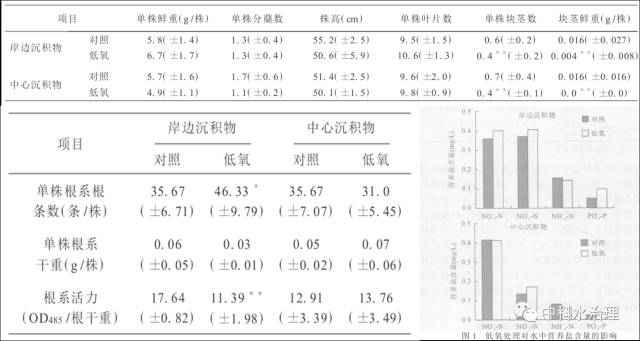 2、低氧對苦草根系的影響顯著,表現(xiàn)為根須變細且數(shù)量增加,根系活力明顯下降。