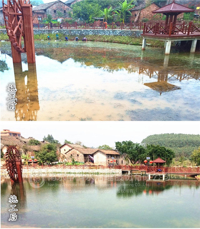 大塘鎮平天新坡生態綜合示范村鴛鴦湖水生態構建與水質提升工程項目是南京中科水治理股份有限公司在廣西南寧實施的“清水型生態系統構建工程”之一,工程實施區為魚塘改造擴建,建設水面面積3900平方米,平均水深1.8米。項目于2015年12月15日正式開工,2016年1月15日完工,并于2016年1月26日通過竣工驗收。工程實施內容主要有:基底改良工程、沉水植物群落構建工程、挺水、浮葉植物群落構建工程、魚類群落構建工程、大型底棲動物群落構建工程等。
